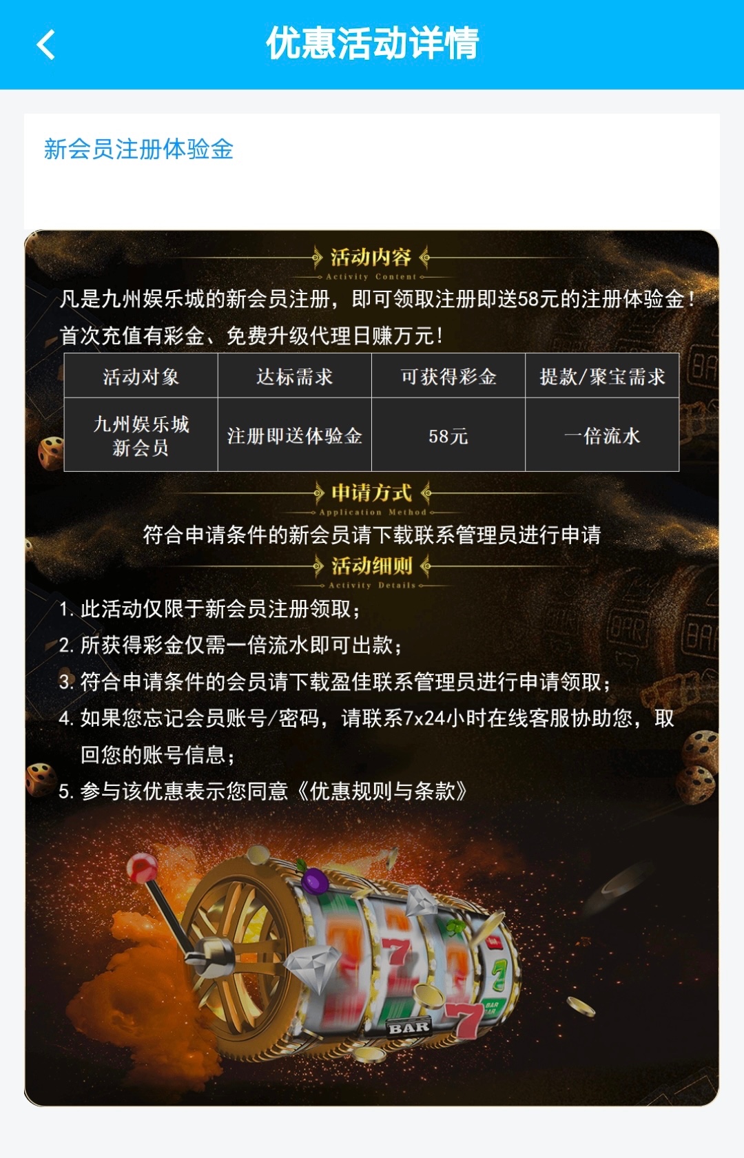 活动:特邀新用户注册绑定手机号秒88不就是不符合,不送的可以联系客服申请58新人开户彩金 邀请码联系在线客服