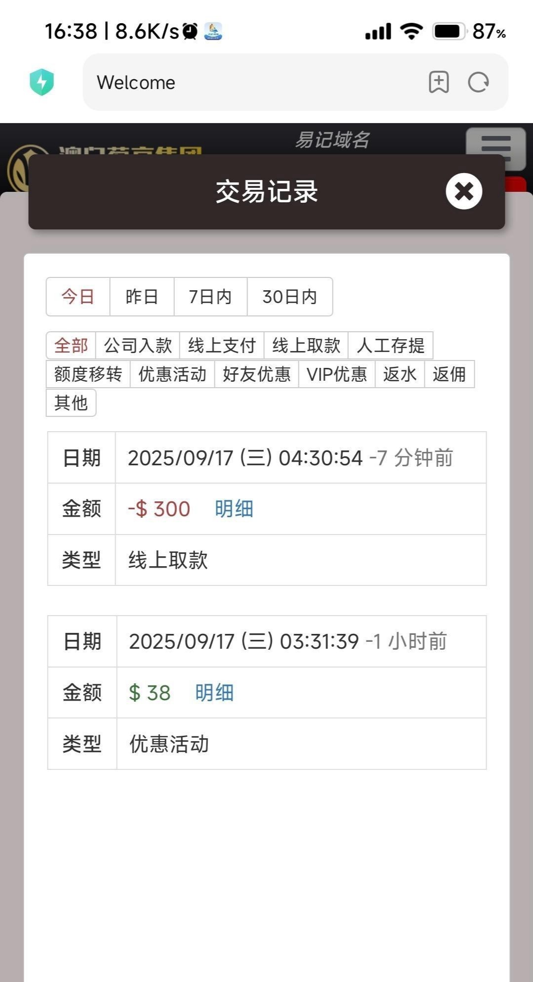 接到电话上线领了38,成功出款300。主打一个白嫖网址047.com
