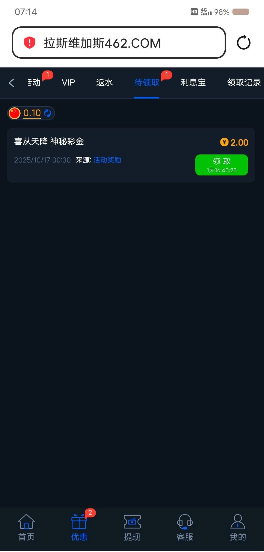462神秘彩金 有号的看看 我充值了一两百所以有点少 462.com