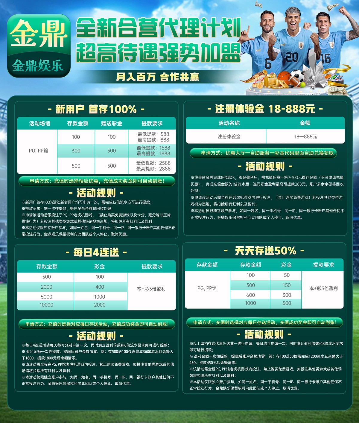 首存活动: 100+100 300+300 500+500  只能PG PP  有提款限制
